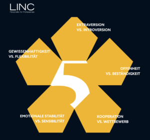 Übrigens: Alle LINC Profiler bauen auf dem weltweit anerkannten Big-Five-Modell auf, dem aktuell besten und empirisch am stärksten untersuchten Persönlichkeitsmodel.